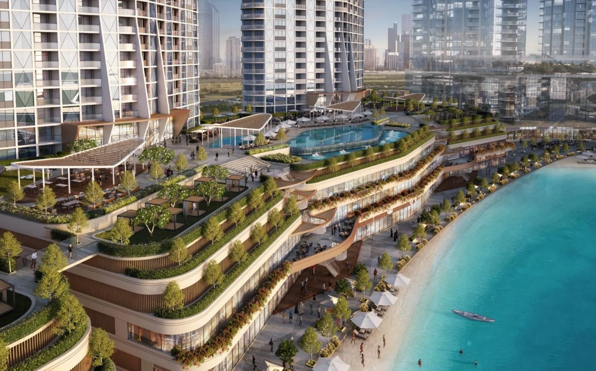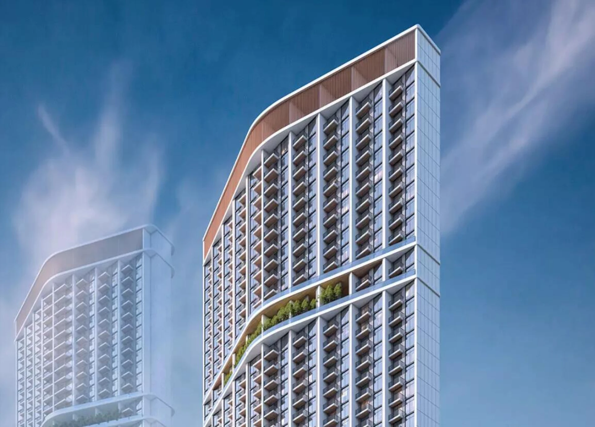 Every 1- and 2-bedroom apartment is meticulously designed to provide sweeping views of clear waters and Dubai’s magnificent skyline, blending sophistication with comfort. The innovative crescent-shaped cluster design lends a distinctive aesthetic to the development, setting it apart as a true icon on the city’s landscape.
