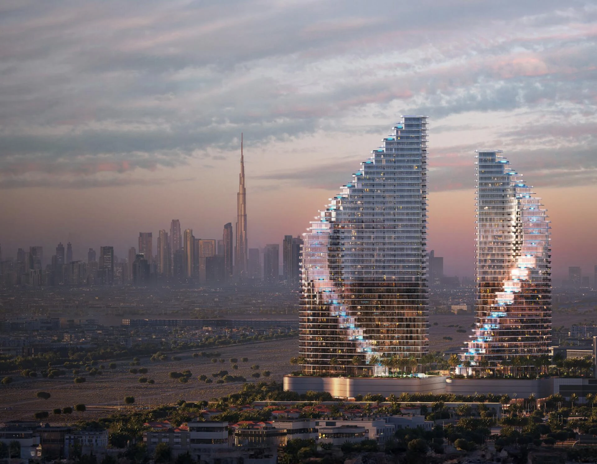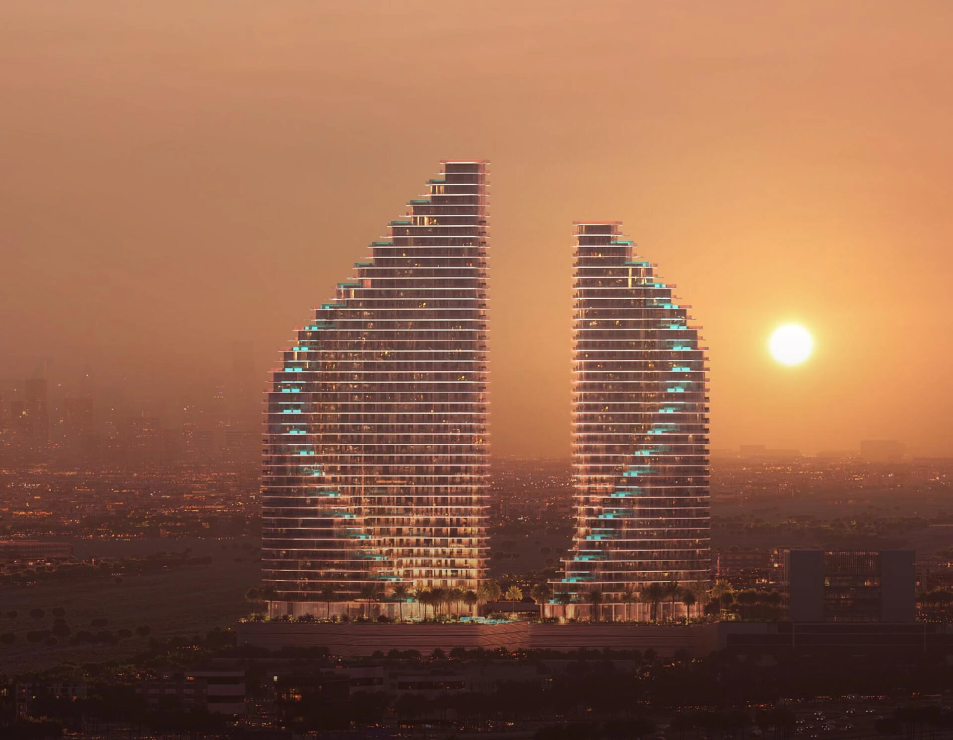 Binghatti Flare rises as a new landmark in the sought-after Jumeirah Village Triangle, redefining the art of modern living. This eye-catching residential project comprises two iconic towers whose bold, expressive architecture seamlessly blends light, form, and emotion. With a sophisticated façade and unrivaled artistic flair, Binghatti Flare is designed to impress at first glance and inspire every day.