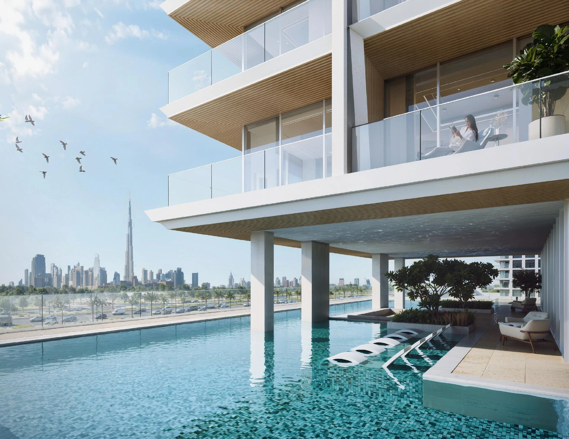 Binghatti Ivory is designed to nurture a balanced life, offering amenities including an adults’ pool with a stylish pool deck, a kids’ pool for family fun, tranquil sunken seating areas, and a unique mini-golf space. Every communal area fosters relaxation and engagement, creating a vibrant community atmosphere.