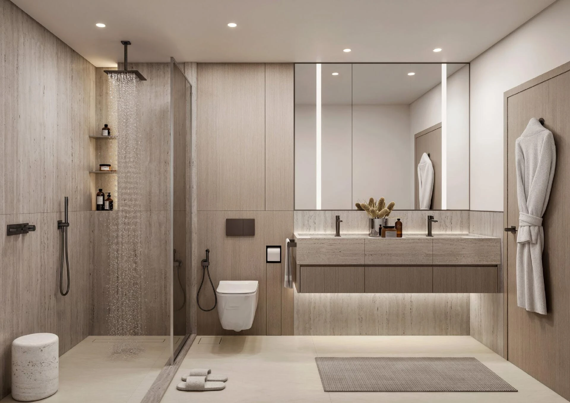 Amenities at Eltiera Views set a new standard for urban retreat. Two infinity pools—one dedicated to families, another to adults—blend seamlessly with Dubai’s skyline, while a beautifully landscaped podium connects the towers and community spaces. Residents will enjoy unique wellness features including hydrotherapy zones, yoga decks, children’s gardens, and vibrant communal areas for both relaxation and recreation.