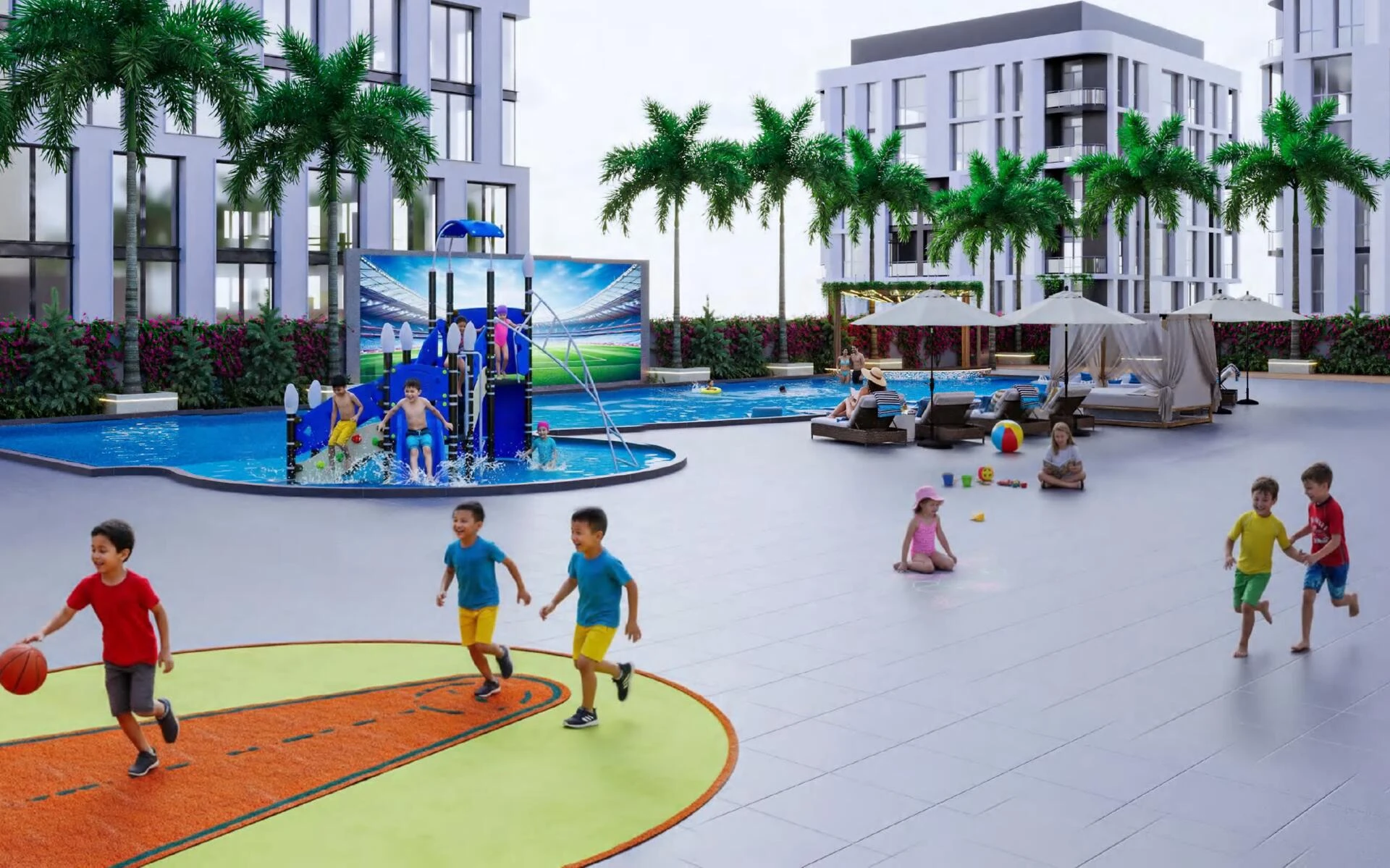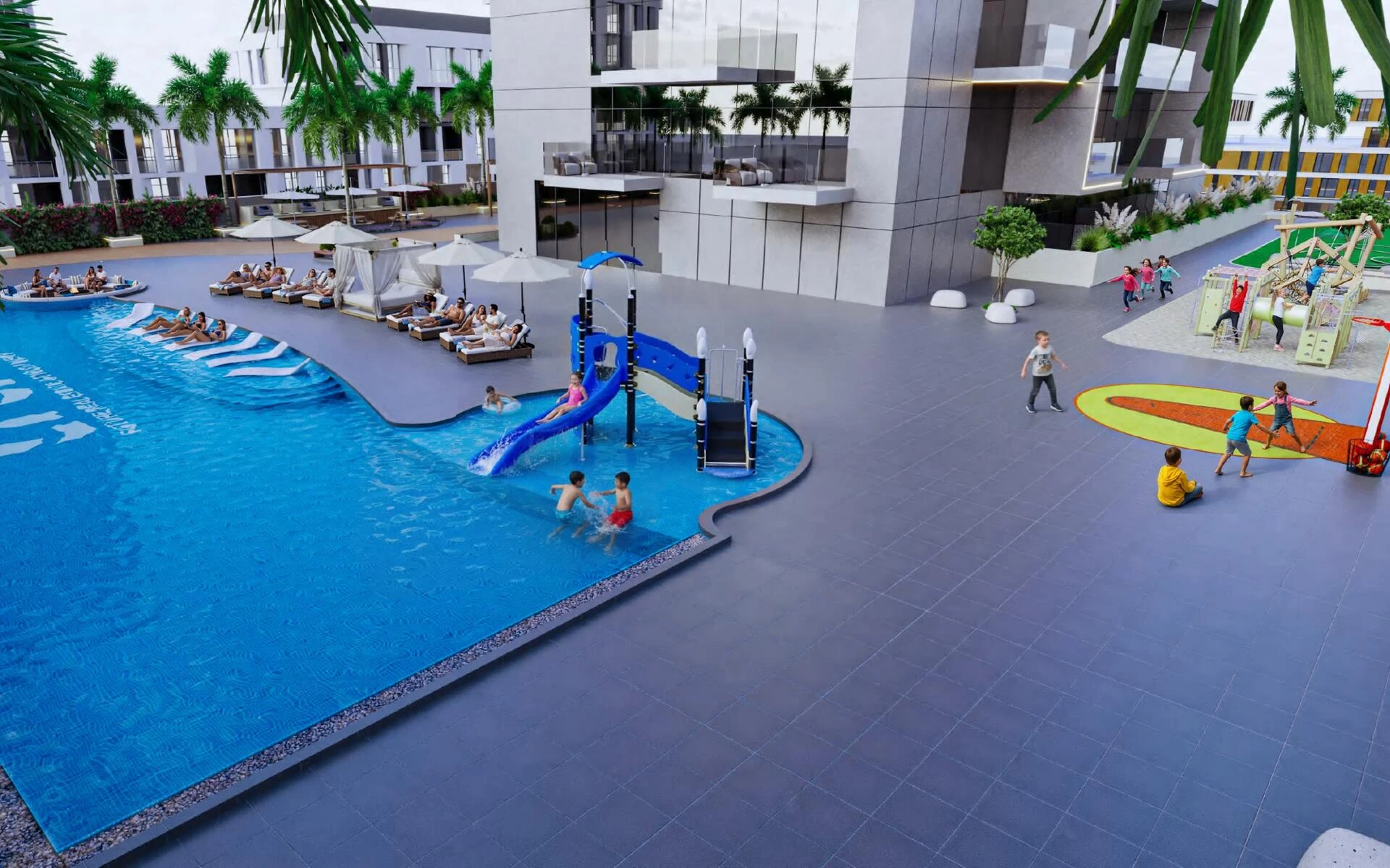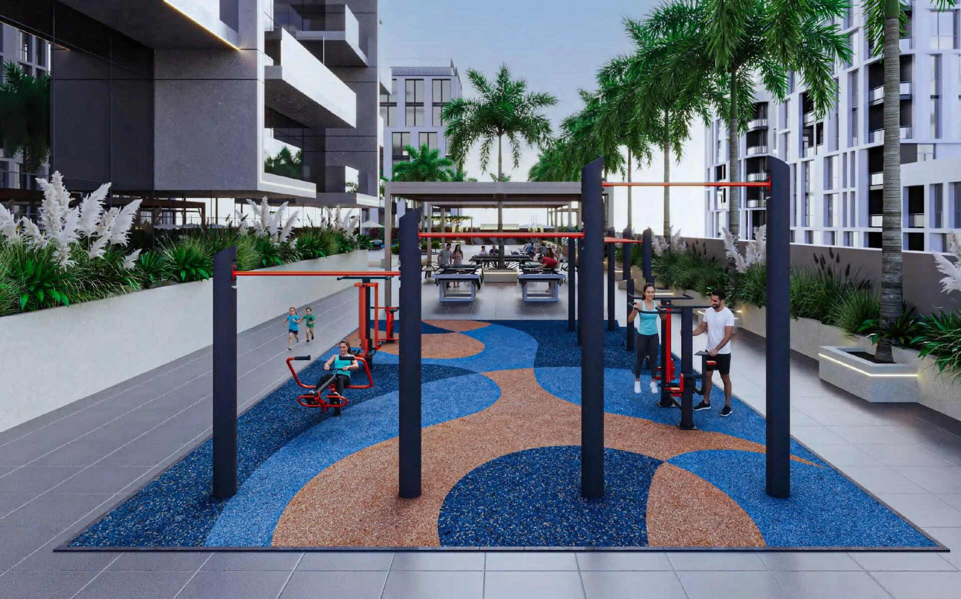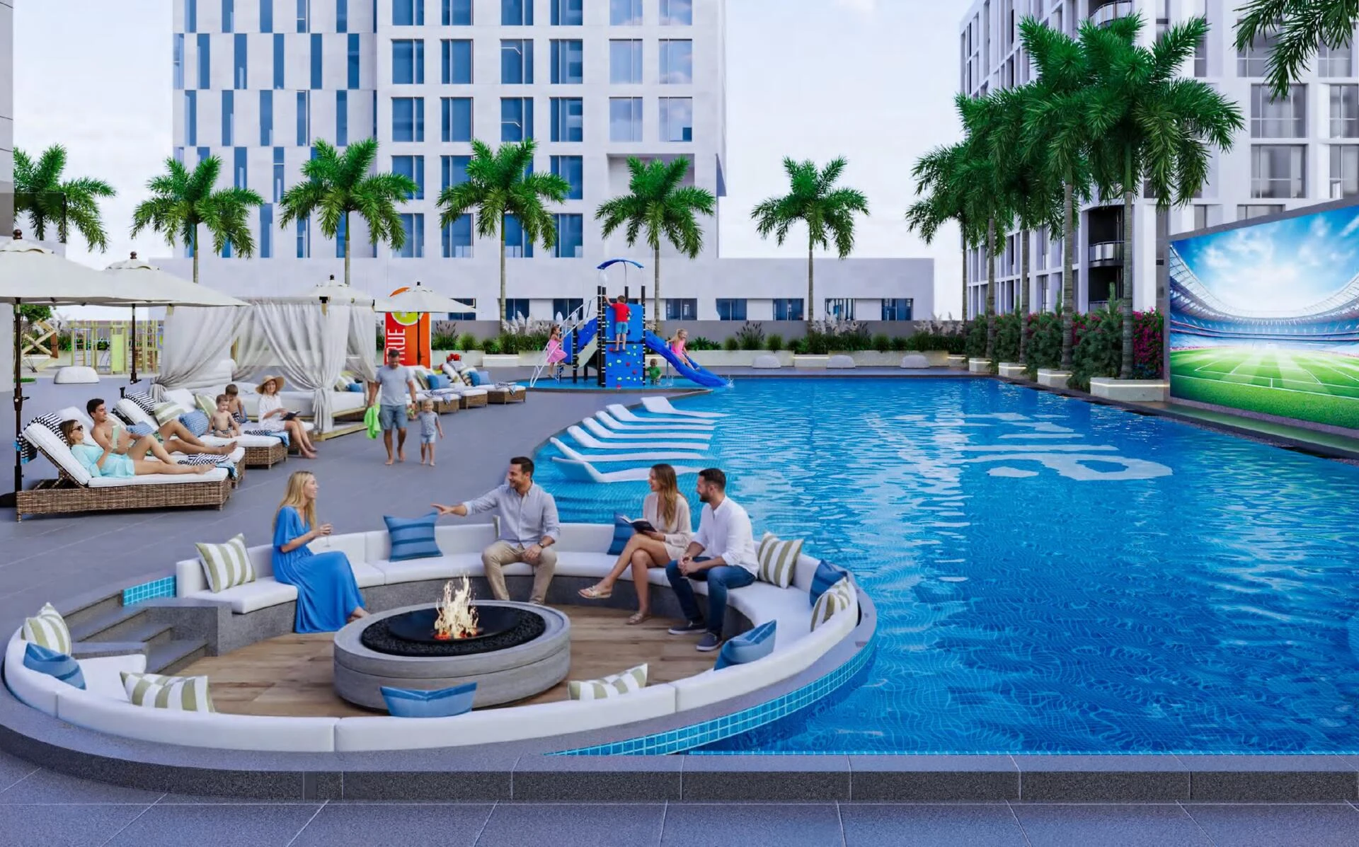 Residents enjoy exclusive access to an array of amenities designed for relaxation, wellness, and entertainment. Dive into indoor or outdoor pools, unwind at the yoga retreat, or enjoy evenings by the outdoor fireplace or pool bar. Families are catered for with dedicated play zones and mini golf, while fitness enthusiasts will appreciate fully equipped gyms and an outdoor workout area. Community perks also include barbeque spaces, an outdoor cinema, games zones, and scenic walking paths bordering picturesque lagoons.