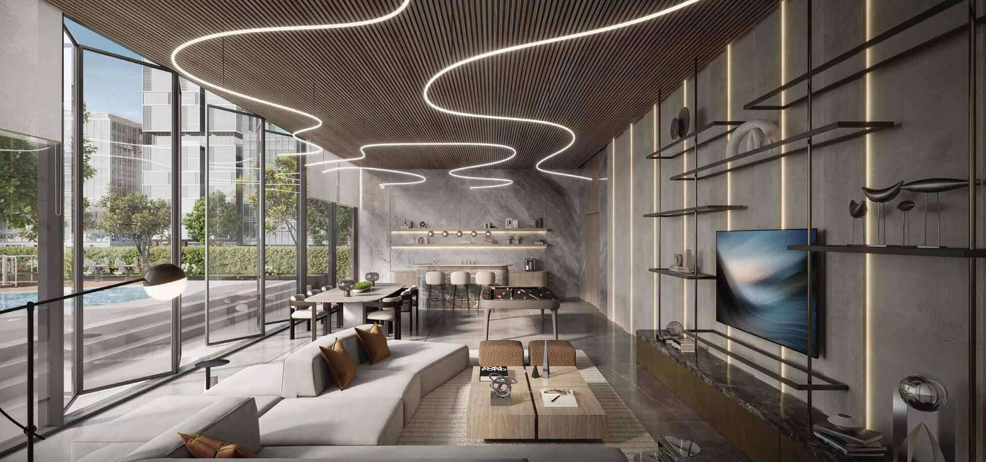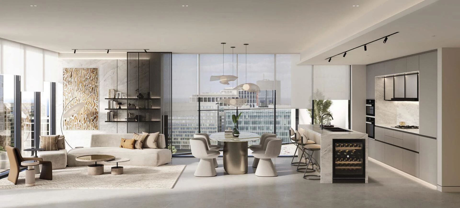 Choose from spacious 1-, 2-, or 3-bedroom residences, each artfully designed with premium materials, contemporary touches, and floor-to-ceiling windows that flood living spaces with natural light. The interiors are thoughtfully planned to maximize comfort, seamlessly incorporating smart home technologies and sleek modern finishes for effortless, stylish daily living.